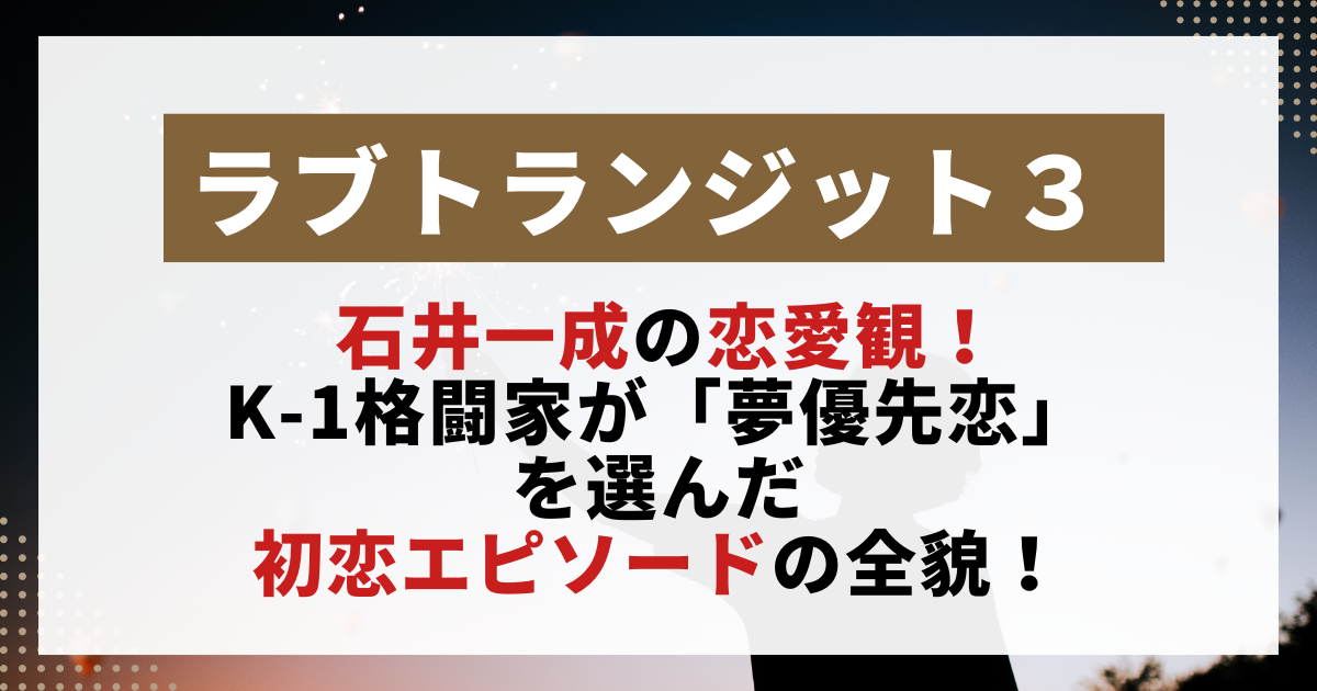 『ラブトランジット3』に登場するK-1ファイター、イッセイ(石井一成)さんの「夢優先恋」ってどんな恋?