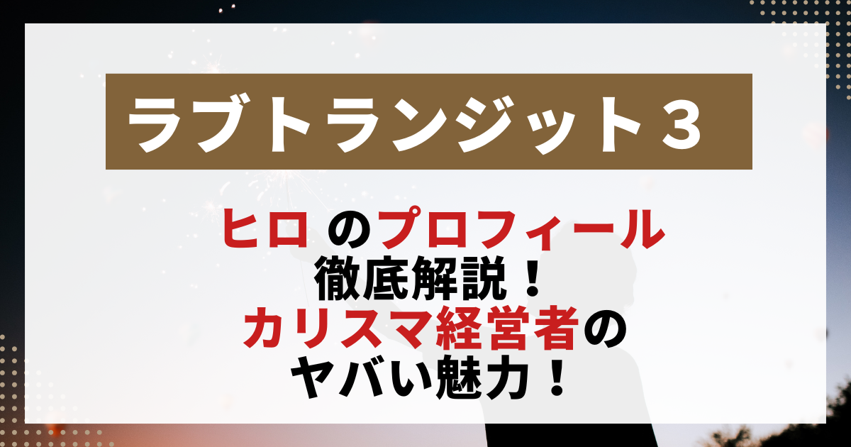 今回は、ラブトランジット3ヒロさんのプロフィールを徹底解説しました。