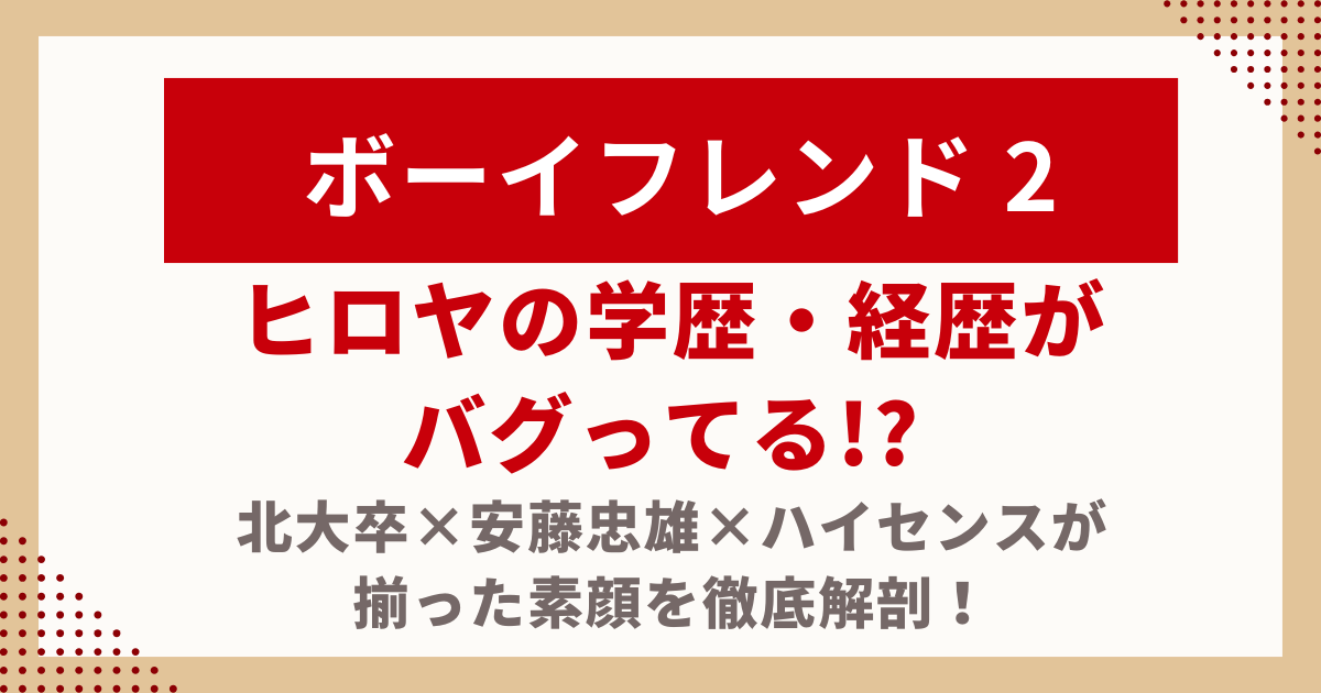 【ボーイフレンド2】ヒロヤの学歴・経歴がバグってる!? 北大卒×安藤忠雄×ハイセンスが揃った素顔を徹底解剖!
