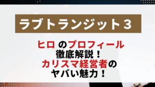 ラブトランジット3 ラブトラ3 ヒロ のプロフィール徹底解説!カリスマ経営者のヤバい魅力! ラブトランジット3への登場で瞬く間に注目を集めているヒロさん(通称)。彼はその圧倒的なカリスマ性と長身のビジュアル、そして謎に包まれた会社経営者という肩書きで、放送前から大きな話題を呼んでいますね。この記事では、ヒロさんのクールな魅力と、海... 2025.10.10 ラブトランジット3恋愛リアリティ番組