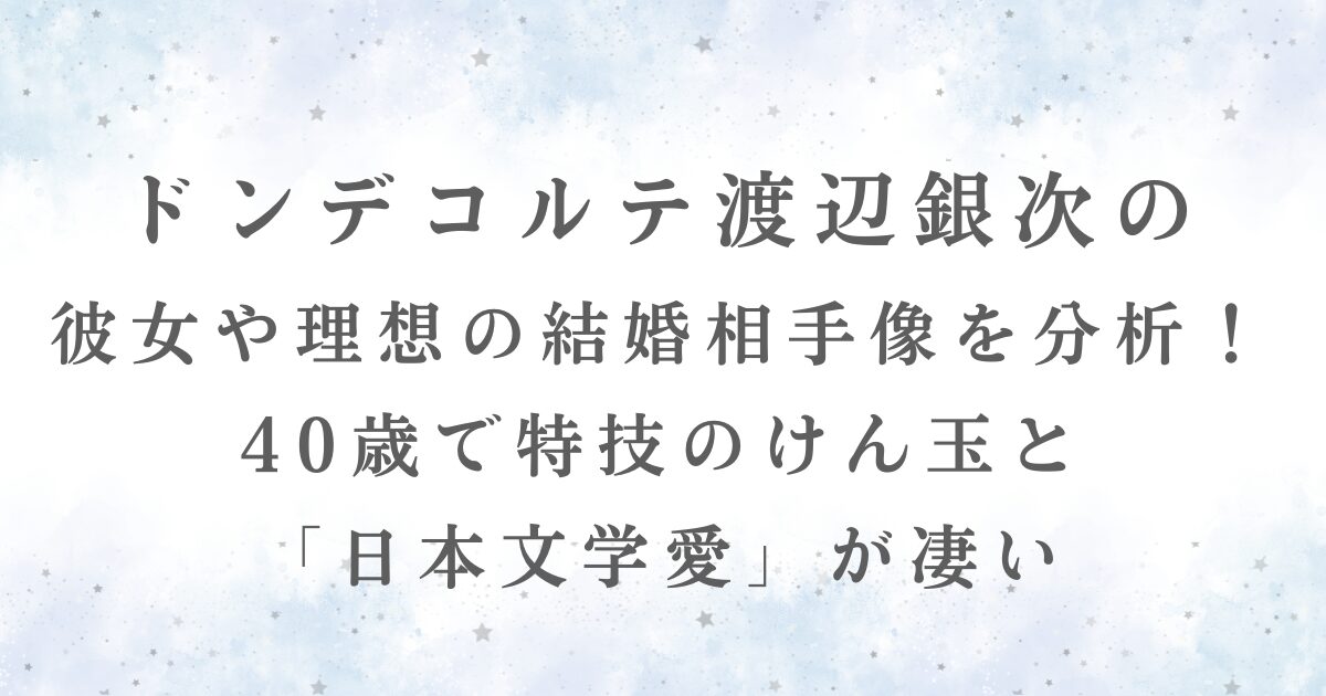 そこでこの記事では、ドンデコルテ渡辺さんのリアルな結婚・彼女情報や、芸人仲間の実家に居候しているという衝撃の私生活について徹底的に深掘りしていきます。