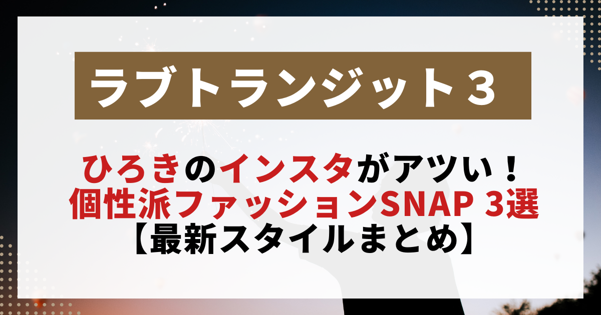 今回は、そんなひろきさんの最新インスタ投稿から厳選したファッションスナップ3選をご紹介します♪