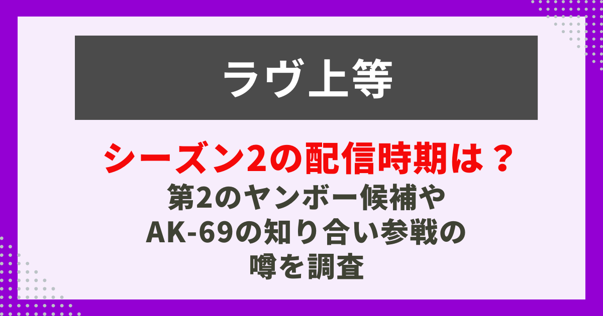 この記事では、発表されたばかりのシーズン2配信スケジュール予測に加え、SNSやネットの噂を徹底分析した「シーズン2参加メンバー(キャスト)の大胆予想」をどこよりも早くお届けします!