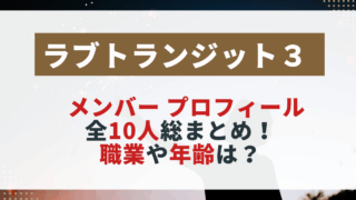 ラブトランジット3 ラブトランジット3 メンバー プロフィール全10人総まとめ!職業や年齢は? Amazonプライム『ラブトランジット3』の出演メンバー職業や経歴はいつ判明?第2話で解禁の可能性や、過去シーズンの傾向も徹底解説。 2025.10.02 ラブトランジット3恋愛リアリティ番組